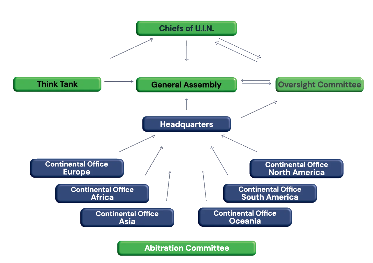 The Chiefs of  U.I.N.  are the highest representative authority and the external voice of the U.I.N.  In fulfilling their duties, they act in accordance with the purposes and policies of the U.I.N..